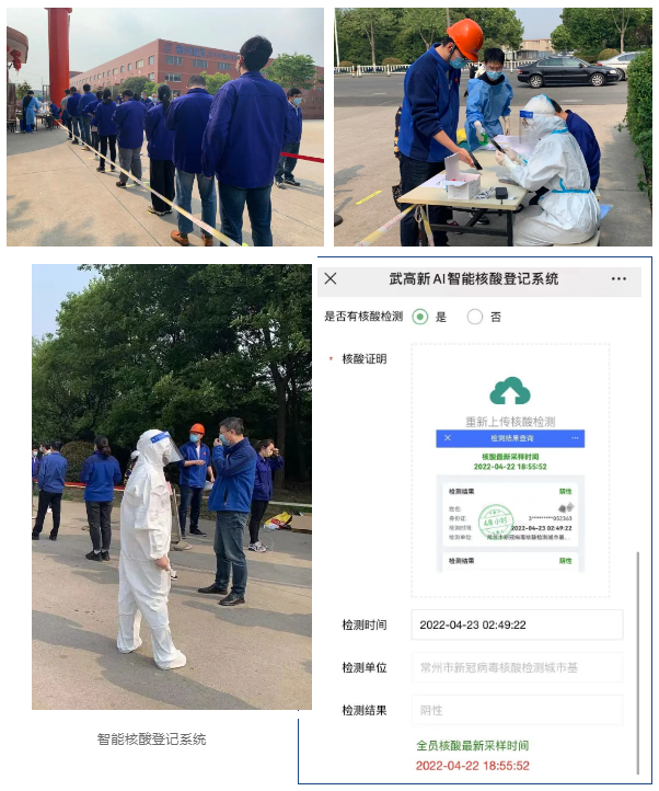 根據(jù)上級文件精神指示,配合開展全體員工及鄰廠單位全員核酸檢測,為安全生產(chǎn)筑牢“防護(hù)墻”。同時要求員工在武高新AI智能核酸系統(tǒng)中及時上傳最新核酸證明。